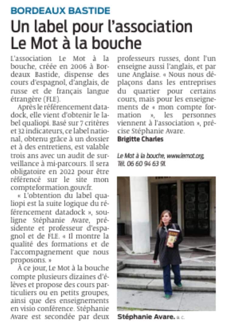 Association Bordeaux Bastide certifiée CLOE et Qualiopi